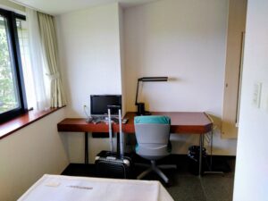 市町村議会議員特別セミナー一日目です。宿泊を伴う研修なので、受講生は一人一部屋の個室で生活します。到着後、昼食を済ませ、13時からの研修に備えます。
