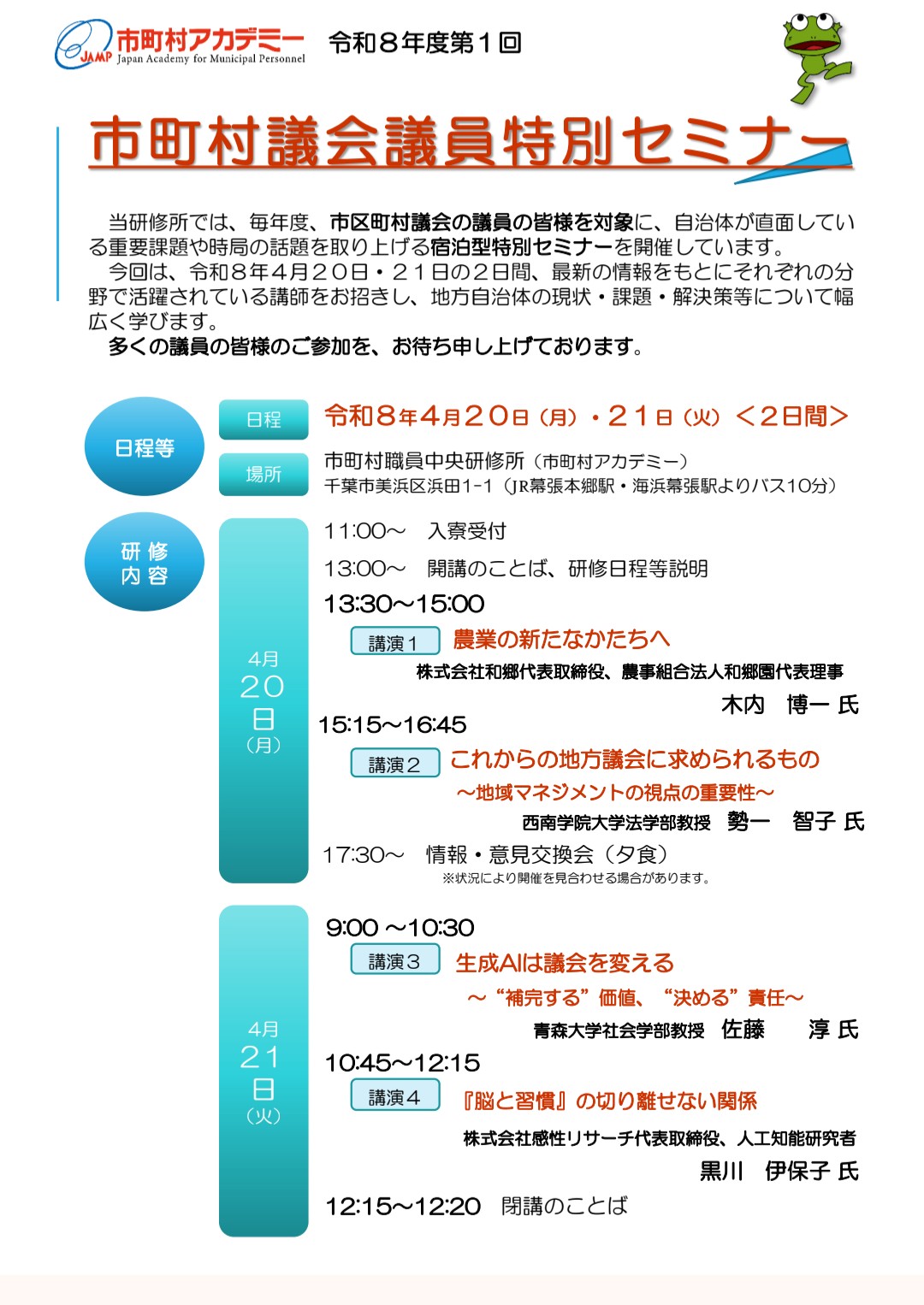 千葉市にある「市町村アカデミー(市町村職員中央研修所)」で開催される「市町村議会議員特別セミナー」を受講するために、前日に上京しました。